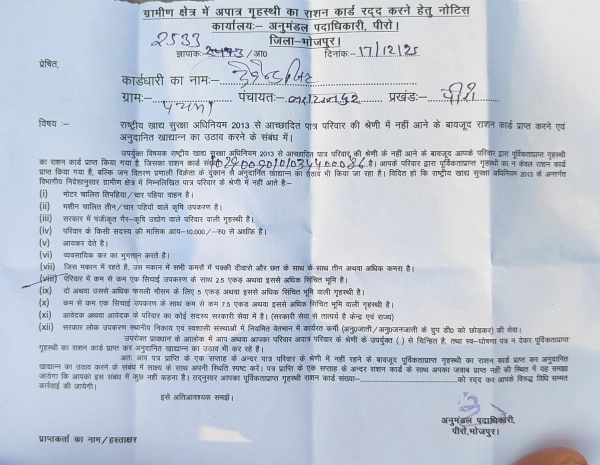 अपात्रों पर गिरी प्रशासन की गाज पीरो अनुमंडल में फर्जी राशन कार्डधारियों के खिलाफ बड़ी कार्रवाई