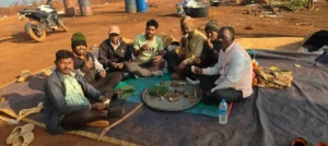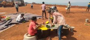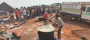 सुबह से ही आंदोलनकारी जंगल से लकड़ी लाते हैं, सामूहिक रूप से चूल्हा जलाते हैं और सभी साथ बैठकर खाना बनाते हैं।