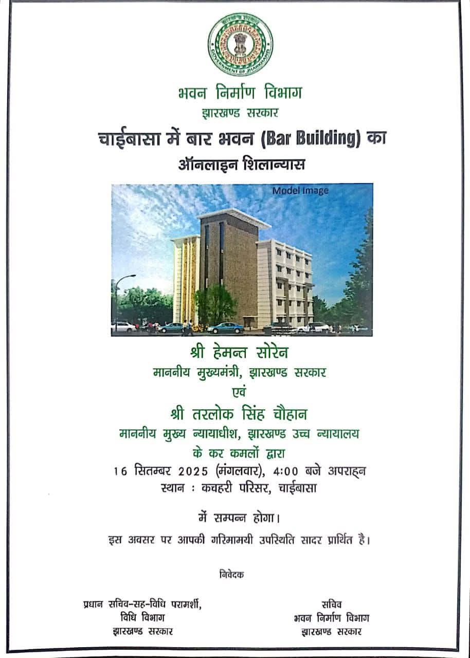 चाईबासा में बार भवन का भव्य उद्घाटन 16 सितंबर को।