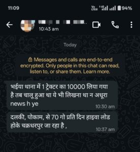 “जब एक पुलिस पदाधिकारी को हर ट्रैक्टर से प्रति महीना 10,000 रुपये पहुंच रहा है…