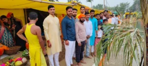 सुबह उगते सूर्य को अंतिम अर्घ्य देने के बाद: