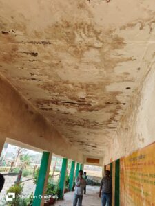 दरकती दीवारें, झड़ता प्लास्टर और नीचे बैठते बच्चे