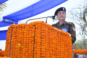 मुख्य अतिथि तदाशा मिश्र, महानिदेशक एवं पुलिस महानिरीक्षक, झारखण्ड ने परेड की सलामी ली और शहीद जवानों को श्रद्धांजलि अर्पित की।