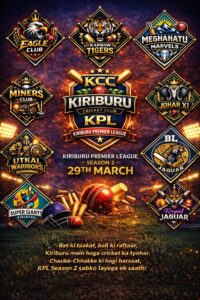 किरीबुरू और आसपास के क्षेत्रों के खेल प्रेमियों के लिए एक बार फिर क्रिकेट का बड़ा उत्सव आने जा रहा है। किरीबुरू क्रिकेट क्लब के तत्वावधान में आयोजित किरिबुरू प्रीमियर लीग (KPL) सीज़न-2 का भव्य शुभारंभ आगामी 29 मार्च से किरीबुरू के फुटबॉल मैदान में होगा। इस प्रतिष्ठित टूर्नामेंट में स्थानीय प्रतिभाओं के साथ-साथ विभिन्न टीमों के खिलाड़ी मैदान में उतरेंगे, जिससे पूरे इलाके में क्रिकेट का रोमांच चरम पर रहने की उम्मीद है।
