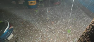 20 मिनट तक गिरे ओले, सड़कों और मैदानों पर बर्फ की चादर; पेड़-पौधों, घरों और फसलों को नुकसान